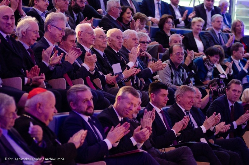 Emocji nie krył rownież profesor dr hab. med. Wojciech Nowak, Rektor Uniwersytetu Jagiellońskiego, który w swoim wystąpieniu przypomniał, że ze Szpitalem Uniwersyteckim związany jest całe swoje zawodowe życie. Wspominając przeciwników budowy nowej siedziby, zwracał uwagę na podobieństwo sytuacji do tej, gdy w latach 70. XX wieku zaczynał pracę w I Katedrze Chirurgii Ogólnej, w której warunki nie spełniały żadnych norm. Pomimo tego rozpoczęty w nich remont spotkał się z ogromną falą krytyki i niezadowolenia ze strony krakowian. - I wtedy zdałem sobie sprawę jak trudno w tym mieście pogodzić zawiść, którą mamy w genomie, ze zdrowym rozsądkiem - mówił rektor UJ, prof. Wojciech Nowak, ciesząc się, że w przypadku budowy NSSU udało się ją ukończyć z sukcesem. - Pragnę bardzo gorąco podziękować - też jako potencjalny pacjent. Bo kiedy już nadejdzie taki moment, że ból, choroba, strach przywiodą mnie tutaj, w te progi, to jestem przekonany, że pomoc, którą tu otrzymam będzie na miarę XXI wieku. Profesjonalna kadra naszego szpitala, przy tak doskonałej fazie diagnostyczno-leczniczej będzie w stanie całej rzeszy cierpiących, przestraszonych chorych udzielić adekwatnej pomocy. To wielka wartość dla pacjentów Krakowa i regionu. To sens naszego działania - podsumował Rektor, prof. Nowak.